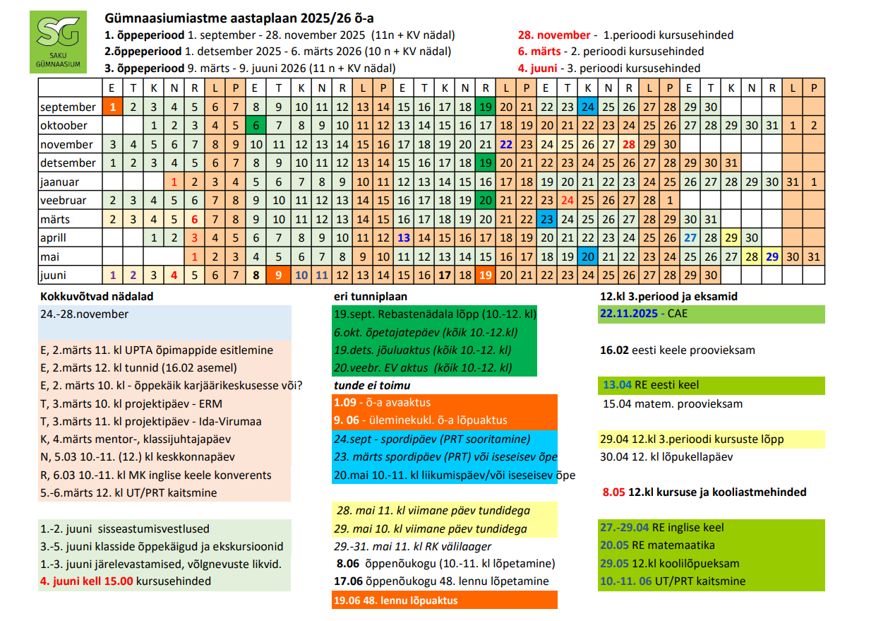 Koolivaheajad Saku Gümnaasiumis