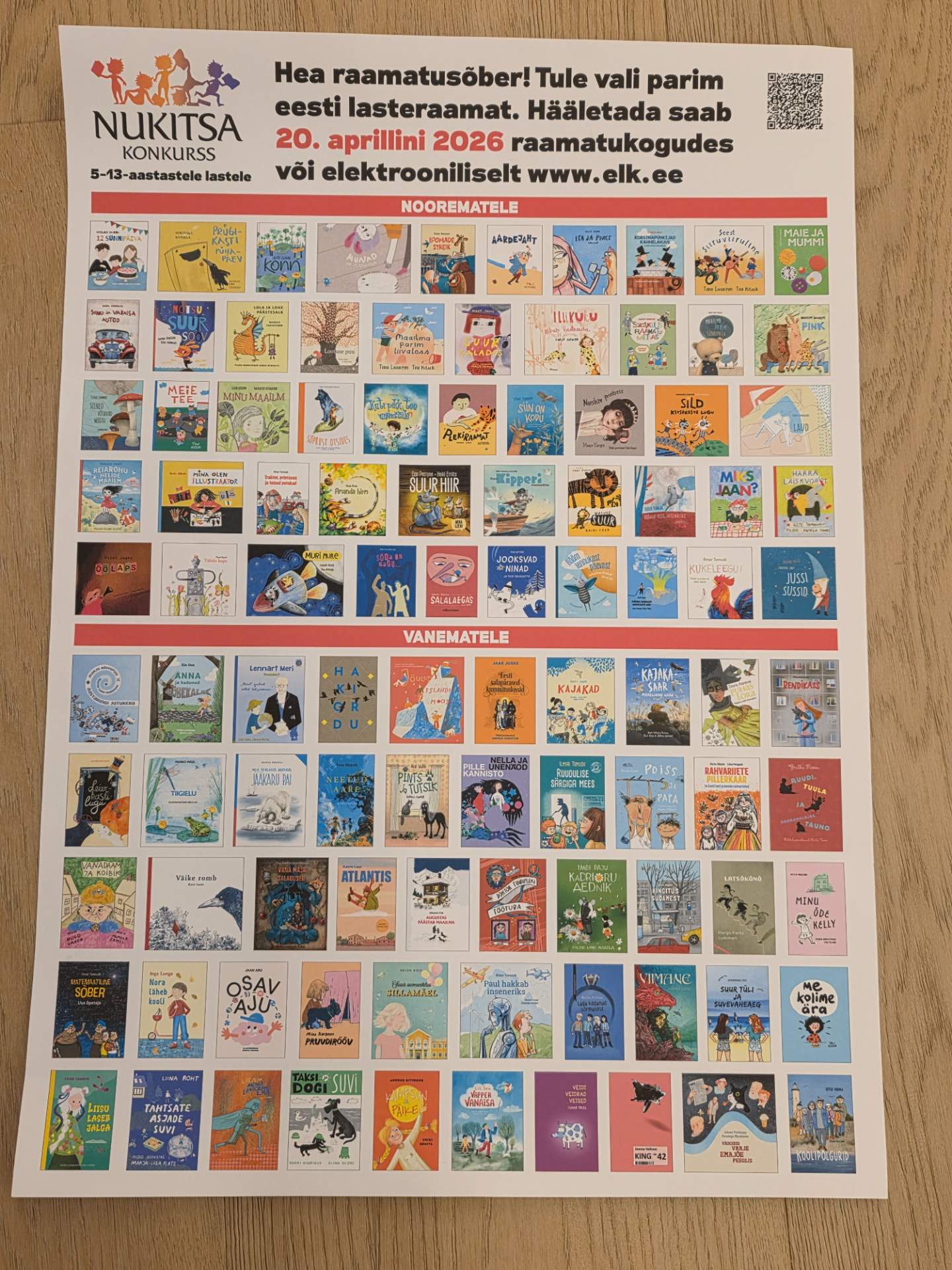 Eesti Lastekirjanduse Keskus kutsub 5.–13. aastaseid lugejaid Nukitsa konkursil valima parimat Eesti lasteraamatut. Hääletada saab 19. jaanuarist kuni 20. aprillini 2026 nii raamatukogudes üle Eesti kui lastekirjanduse keskuse veebilehel.