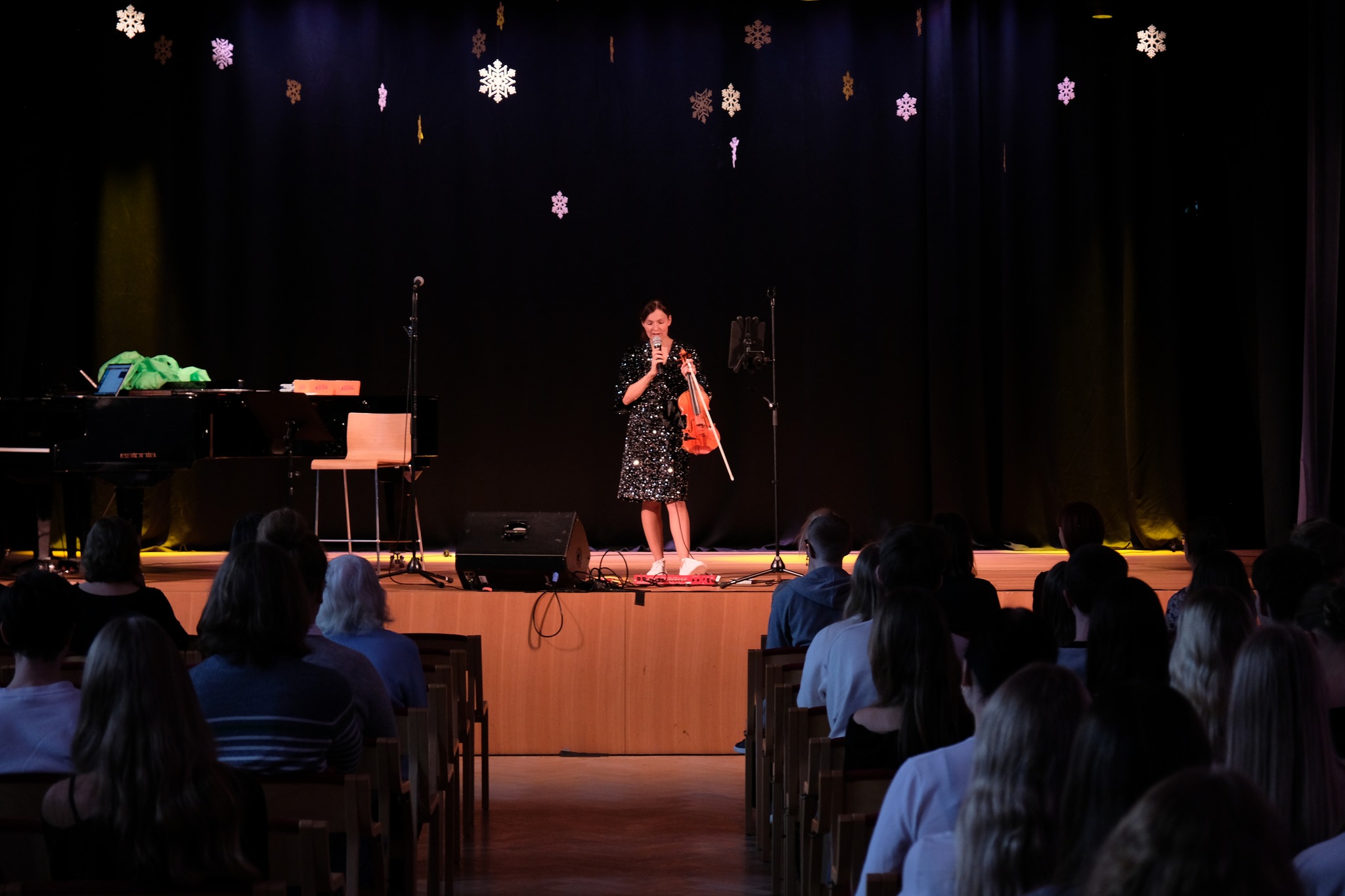 Muusikalise elamuse pakkus viiuldaja Linda-Anette Verte, kes sidus oskuslikult vana ja uue, kasutades nii traditsioonilist pilli – viiulit, kui ka elektroonilist instrumenti, looperit. Ühtlasi tunnustasime õpilasi, kes olid esimesel poolaastal olümpiaadidelt ja muudelt konkurssidelt noppinud auhinnalisi kohti.
