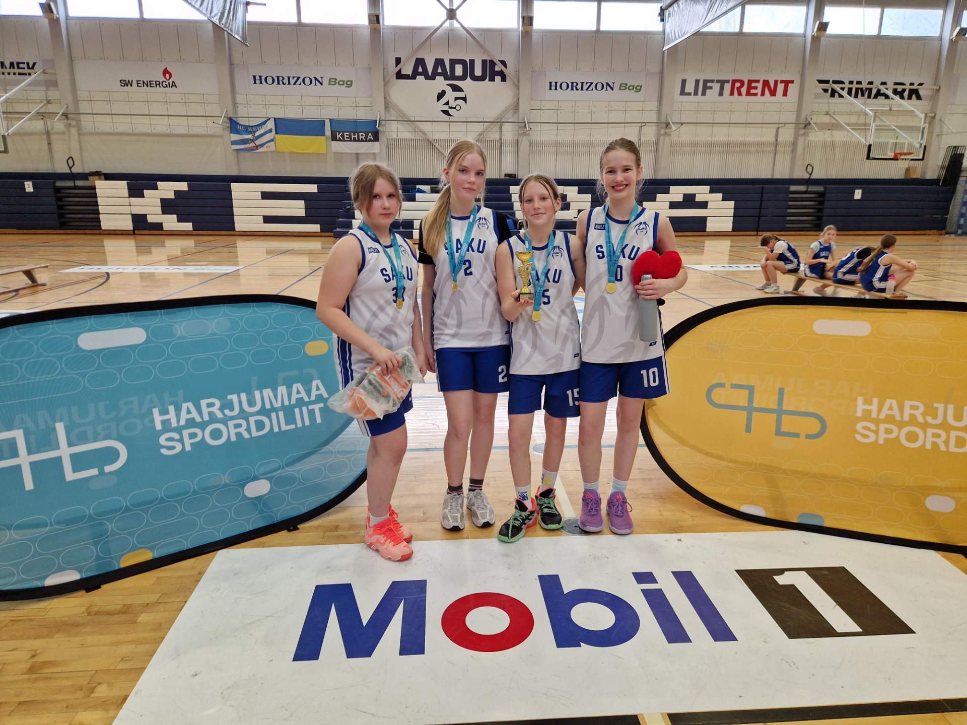 Saku Gümnaasiumi 1.-5. klasside korvpallivõistkonnad osalesid täna Harjumaa koolide 3vs3 korvpalliturniiril Kehra Spordihoones. Väga tublilt läks meie tüdrukute esimesel võistkonnal, kes saavutas I koha (koosseis Noora Piirsoo, Emili Stroo, Marleen Kõllamets ja Kirtel Müür). Finaalis alistasid tüdrukud tulemusega 12:3 Kehra gümnaasiumi. Meie kooli teine võistkond saavutas tubli 4. koha – pronksimängus tuli napp 5:6 kaotus Raasiku Kooli vastu.