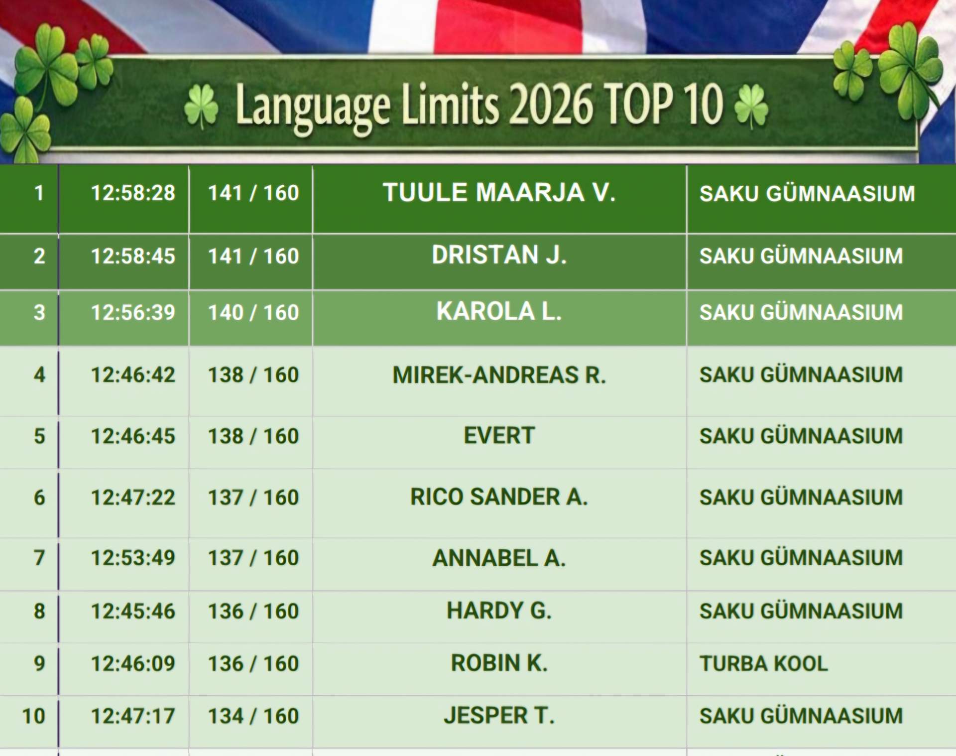 17. märtsil toimus maakondlik inglise keele teadmistelahing Language Limits 2026, mille teemaks oli sel aastal Iirimaa. Võistlusele laekus 145 tööd 14 koolist.
