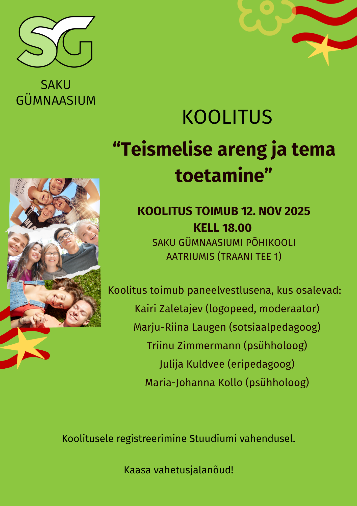 Koolitusel osalemiseks palume end kirja panna Stuudiumi kaudu hiljemalt 9. novembril 2025 kell 22.00.
