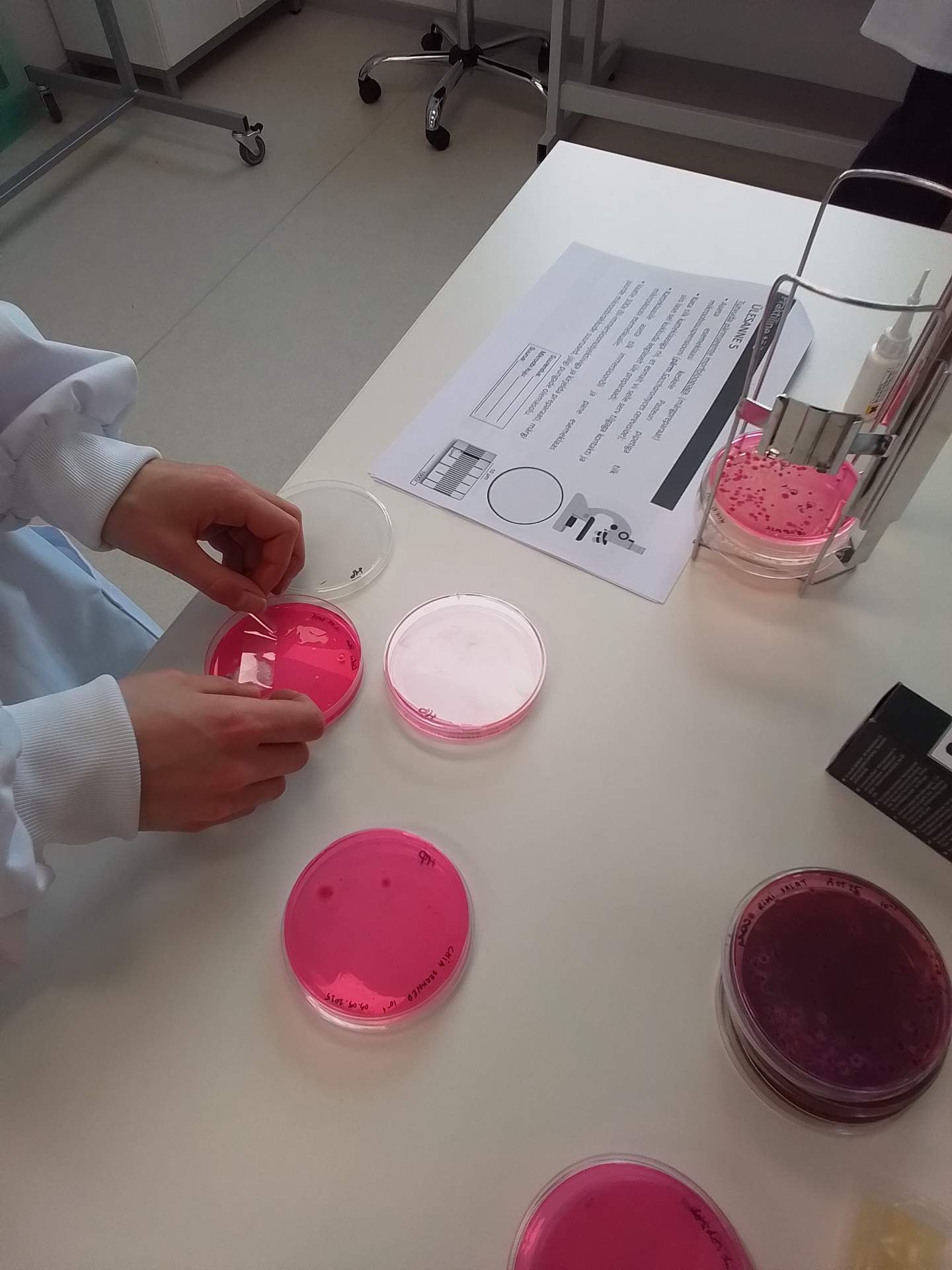 Noored said jäädvustada oma kätel (enne ja pärast nende pesemist) elutsevaid potentsiaalselt haigusttekitavaid mikroobe streriilsel veriagarasöötmel. Proove inkubeeritakse Tartus ja hiljem antakse meile teada tulemustest. Tutvustati söötmega täidetud Petri tasside markeerimist.