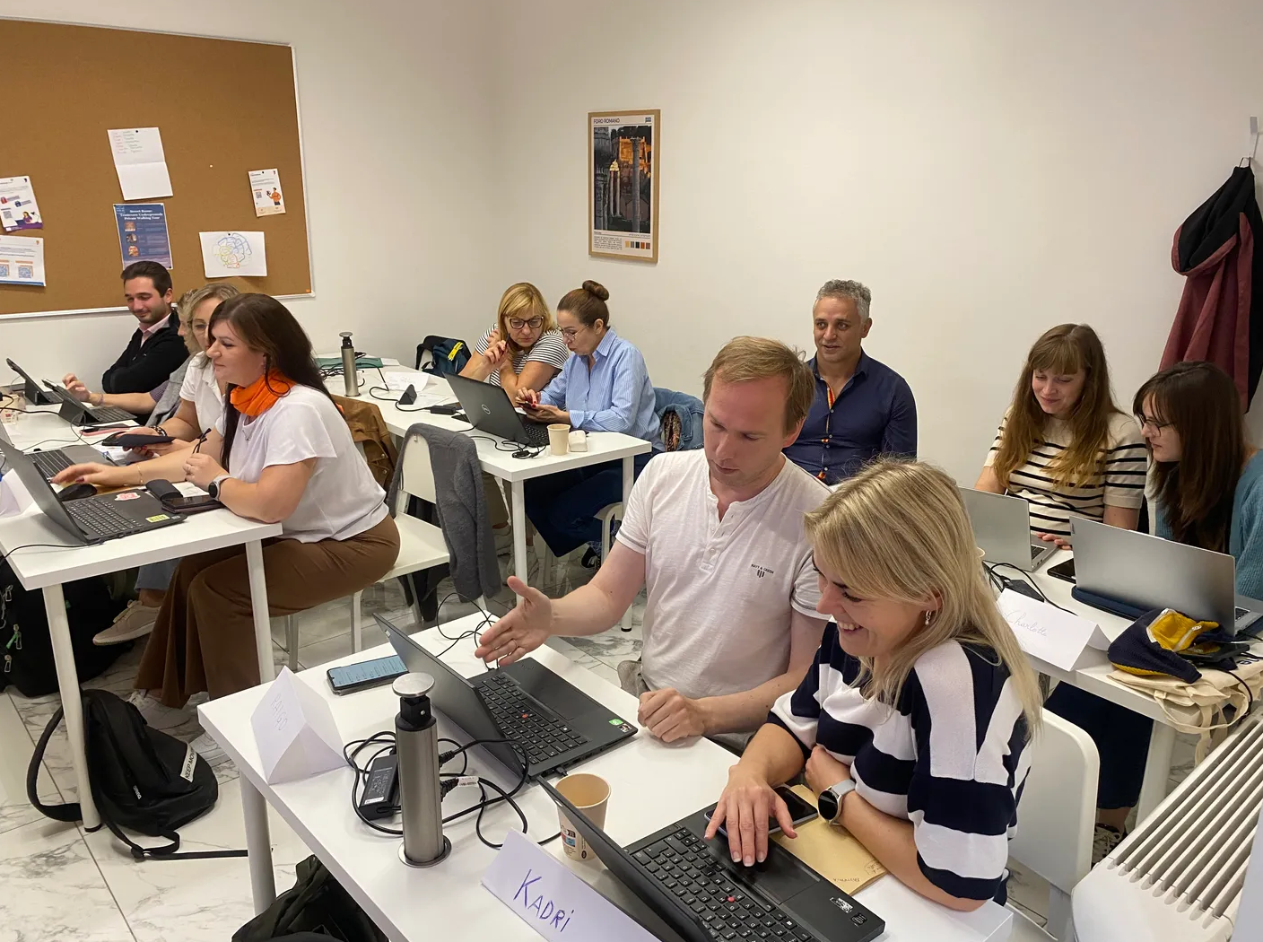 Meie grupp ei olnud väga suur, 11 õpetajat viiest riigist, aga nende sekka oli juhtunud peale minu veel üks Eestist pärit matemaatikaõpetaja nimega Kadri. Klappisime hästi ja seega tegime omavahel palju koostööd, eriti kuna kiiresti selgus poolte osalejate tagasihoidlik inglise keele oskus. Leedust olid õpetajad tulnud seetõttu lausa neljakesi, nii et üks inglise keele oskaja aitas teisi järele. Kahest belglannast üks oli lapseootel, luksemburglased hoidsid väga omaette ja prantslane oli tugeva aktsendiga Reunioni saarelt pärit mees. Erasmuse koolitustel kohtab ootamatult kirevat seltskonda.