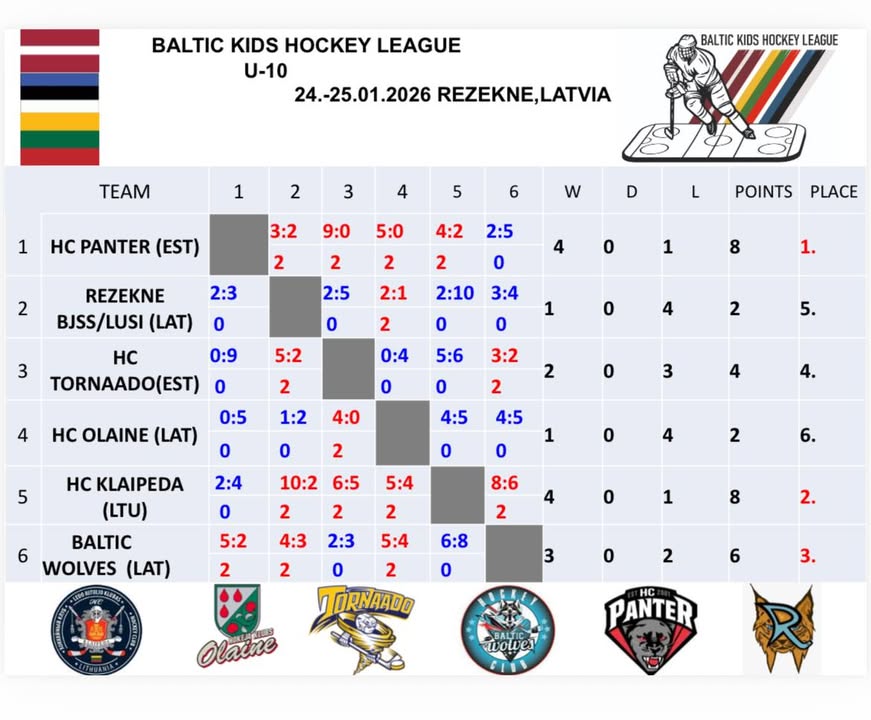 24.–25.01.2026 toimus Lätis, Rēzeknes Baltic Kids Hockey League’i I etapp U10 vanuseklassis. Turniiril saavutas HC Panter esikoha. Meeskonna koosseisu kuulusid ka 3.b klassi õpilane Rico Karu ning 3.c klassi õpilane Birgitte Kattai.